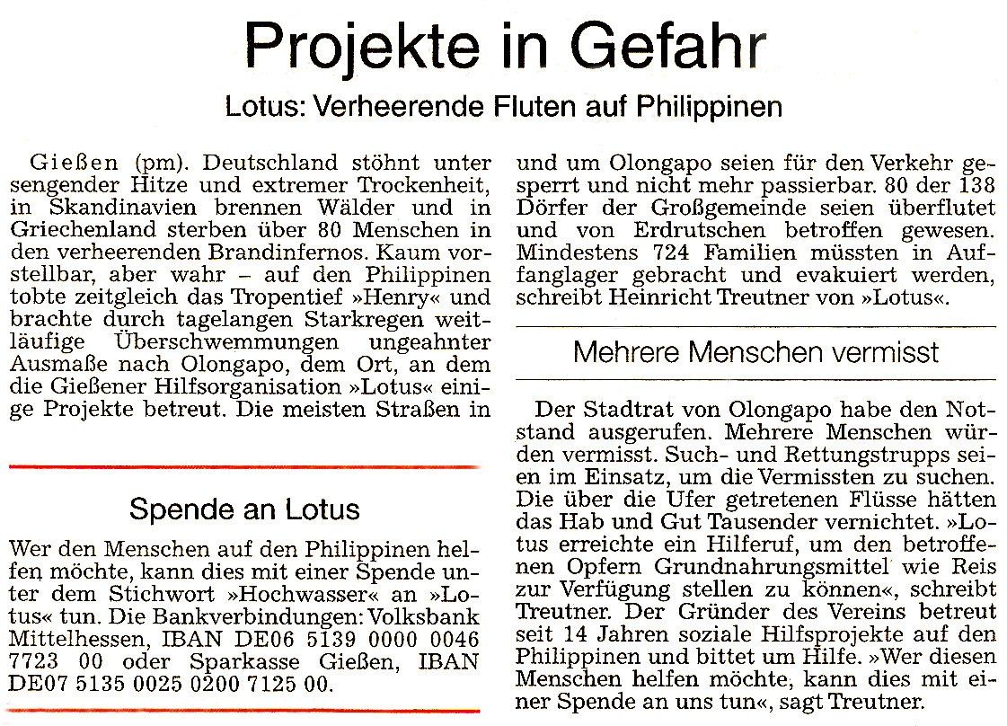 Die Lotushilfe ist seit 2005 aktiv und nicht zuletzt durch Artikel in der regionalen und überregionalen Presse vielen ein Begriff. Neues zu unseren Hilfsprojekten und Missionen wird hier der Öffentlichkeit regelmäßig nähergebracht.